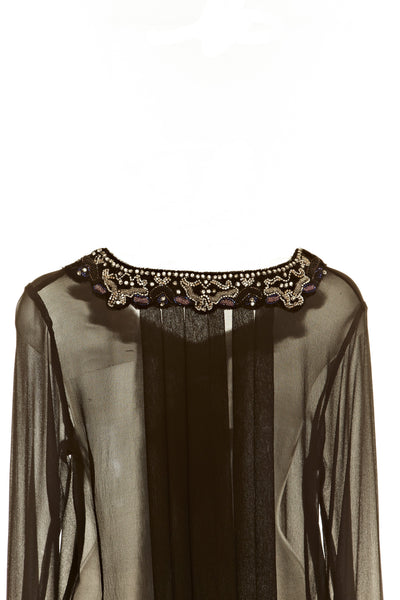 - Black Sheer Tunic Top with Bead Work around Neck